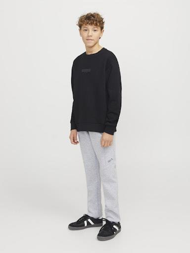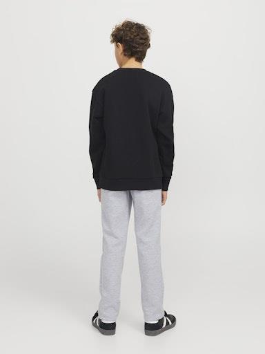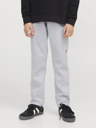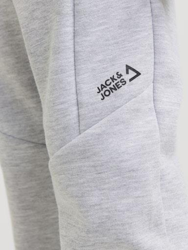 Otroška fantovska modna trenirka blagovne znamke JACK & JONES JUNIOR z elastiko in vrvico v pasu, z dekorativnim šivom nad in pod koleni, z 2 žepoma na zadrgo na straneh, patent na hlačnicah. Material: 58% poliester, 42% bombaž
