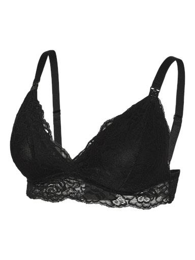 Nedrc za dojenje s čipko in nastavljivimi naramnicami, z elastično čipkasto oporo v spodnjem delu, V - izrez, s podlogo. Omogoča enostavno dojenje, uporaben pa je tudi v obdobju nosečnosti. Material: 70% recikliran najlon, 15% elastan, 15% poliamid; 27,49€/kos