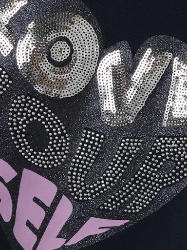 Otroška dekliška majica s potiskom spredaj, z dekorativnimi kamenčki, regular kroj, dolg rokav. Material: 95% bombaž, 5% elastan