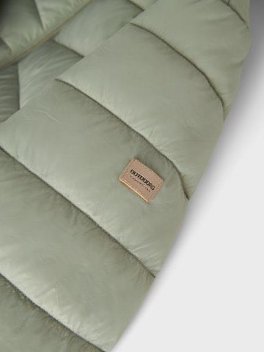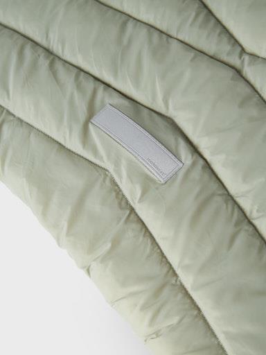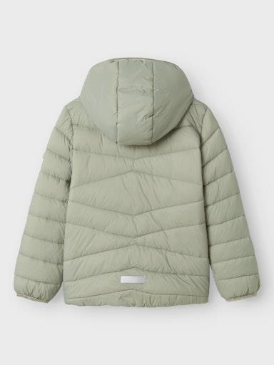 Otroška dekliška prešita jakna z odstranljivo kapuco, z odsevnim elementom zadaj, s tanko podlogo in polnilom, z dekorativnim našitkom spredaj. Zapenjanje z zadrgo, dva žepa na straneh z zapenjanjem na net, mehka elastika na rokavih. Material: zunaj: 100% recikliran najlon, podloga: 100% poliester, polnilo: 100% recikliran poliester