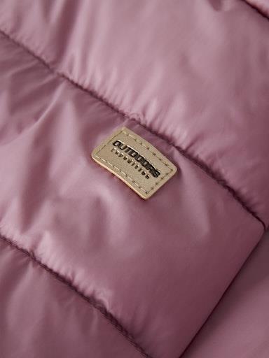 Otroška dekliška prešita jakna z odstranljivo kapuco, z odsevnim elementom zadaj, s tanko podlogo in polnilom, z dekorativnim našitkom spredaj. Zapenjanje z zadrgo, dva žepa na straneh z zapenjanjem na net, mehka elastika na rokavih. Material: zunaj: 100% recikliran najlon, podloga: 100% poliester, polnilo: 100% recikliran poliester