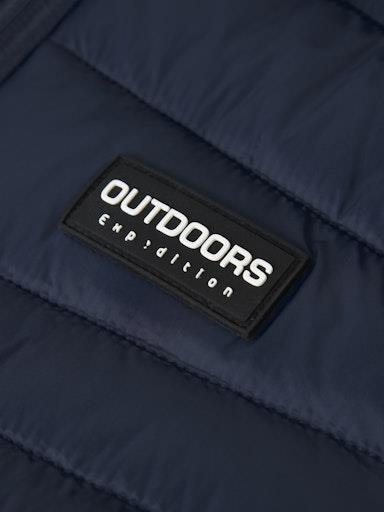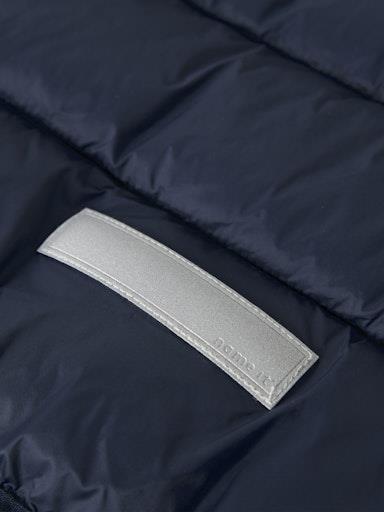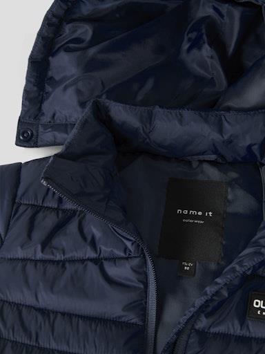 Otroška fantovska prešita jakna z odstranljivo kapuco, z odsevnim elementom zadaj, s tanko podlogo in polnilom, z dekorativnim našitkom spredaj. Zapenjanje z zadrgo, dva žepa na straneh, mehka elastika na rokavih. Material: zunaj: 100% recikliran najlon, podloga: 100% poliester, polnilo: 100% recikliran poliester