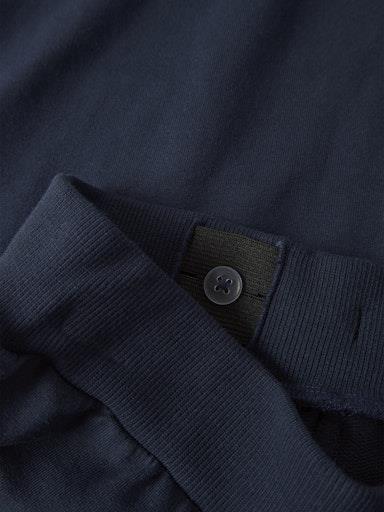 Otroške fantovske kratke hlačez elastiko in vrvico v pasu, z dvema žepoma spredaj in enim prešitim žepom na zadnji strani, z zavihki na dnu hlačnic, nastavljiva širina pasu. Material: 100% bombaž; vrvica: 100% bombaž