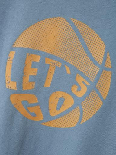 Otroška fantovska mehka in udobna majica z dekorativnim potiskom, regular kroj, z zavihki na rokavih, kratek rokav. Material: 95% ekološki bombaž, 5% elastan