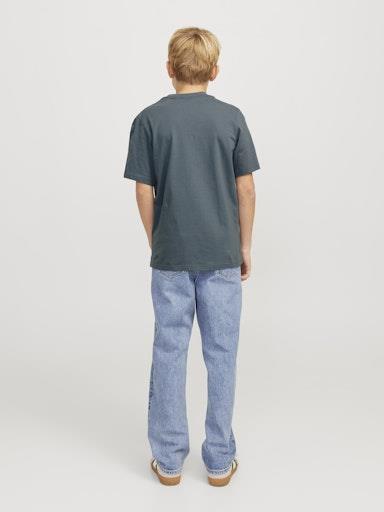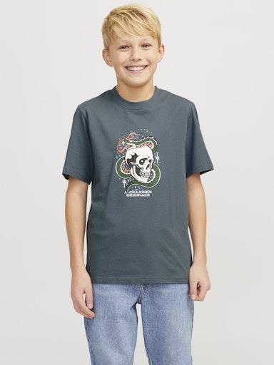 Otroška fantovska modna majica blagovne znamke JACK & JONES JUNIOR iz mehkega jersey-a, z mehkim potiskom spredaj, udoben in prijeten kroj za nošenje, kratek rokav. Material: 95% bombaž, 5% elastan