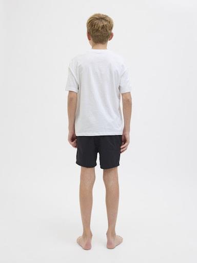 Otroške fantovske kopalne kratke hlače blagovne znamke JACK & JONES JUNIOR, z našitkom na hlačnici, z elastiko in vrvico v pasu, z mehkimi mrežastimi notranjimi hlačami, hitro sušeč material. Nastavljiva širina pasu. Material: 50% poliester, 50% recikliran poliester