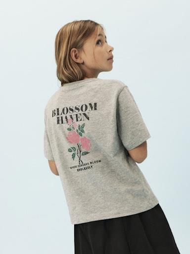 Otroška dekliška majica iz prijetnega in udobnega ekološkega bombaža, s potiskom spredaj in zadaj, z izvezenimi detajli, širši in krajši kroj, kratek rokav. Material: siva: 98% ekološki bombaž, 2% viskoza; bela: 100% ekološki bombaž