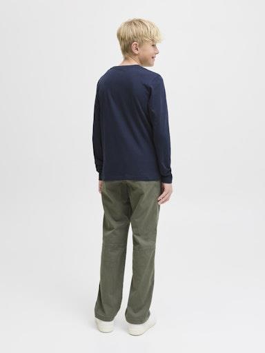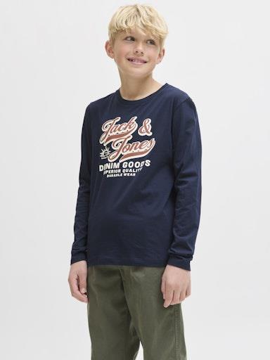 Otroška fantovska modna majica blagovne znamke JACK & JONES JUNIOR iz mehkega jersey-a, z mehkim potiskom spredaj, udoben in prijeten kroj za nošenje, dolg rokav. Material: 100% bombaž