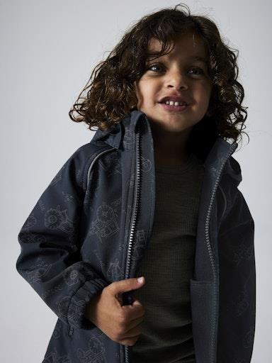 Otroška fantovska softshell jakna z all over vzorcem, narejena iz odličnega in vzdržljivega materiala (20.000 Martindale), ki diha (3.000 g/m2/24 h), ne prepušča vode (8.000 mm vodnega stolpca) in vetra. Zapenjanje z zadrgo, odsevni elementi spredaj in zadaj. Odstranljiva kapuca, elastika v zapestjih, mehka notranjost iz flisa, dva žepa na zadrgo. Material: zunaj: 94% recikliran poliester, 6% elastan; podloga: 100% poliester