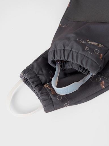 Otroški fantovski softshell kombinezon narejen iz odličnega in vzdržljivega materiala (20.000 Martindale), ki diha (3.000g/m2/24h) in ne prepušča vode (8.000mm vodnega stolpca) in vetra ter z membrano med zunanjo in notranjo plastjo. Z deloma lepljenimi šivi na vseh najbolj kritičnih območjih! Z all over vzorcem in podložen z mehkim flisom v hrbtnem delu, pri vratu in zapestjih ter v kapuci. Zapenjanje z dolgo zadrgo, kar omogoča otrokom lažje oblačenje in slačenje, odsevni elementi spredaj in zadaj. Odstranljiva kapuca, elastika v zapestjih in pri gležnjih, z odstranljivima in nastavljivima elastičnima trakovoma na dnu hlačnic. S posebej ojačanim sedalnim delom zadaj in koleni spredaj, ki so najbolj izpostavljeni pri otroški igri. Material: zunaj: 94% recikliran poliester, 6% elastan; podloga: 100% recikliran poliester; polnilo: 100% recikliran poliester