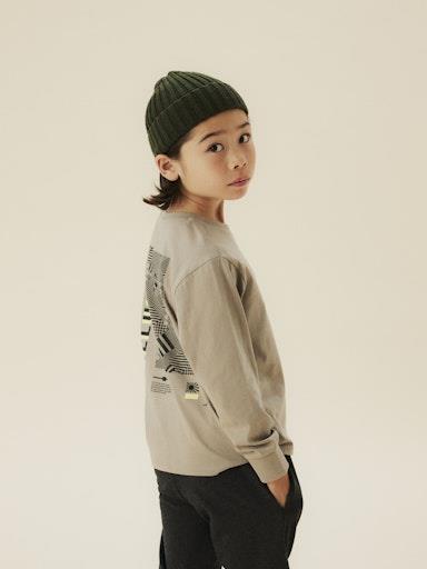 Otroška fantovska majica iz prijetnega in udobnega bombaža, s potiskom spredaj in zadaj, z rebrastim patentom na zapestjih, raglo širši in krajši kroj, dolg rokav. Material: 100% bombaž