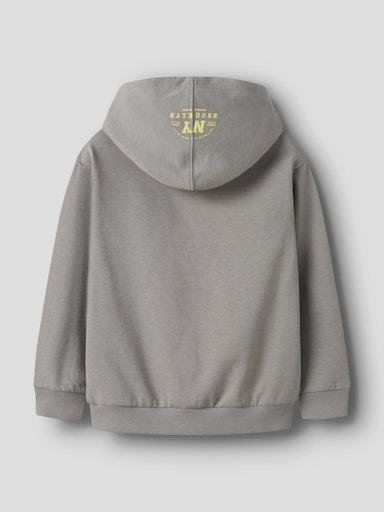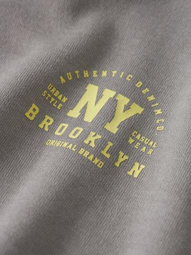 Otroški fantovski pulover s kapuco, z mehkim rebrastim patentom na zaključkih, s potiskom spredaj in zadaj, kosmaten material, rahlo širši kroj, dolg rokav. Material: 60% bombaž, 40% poliester