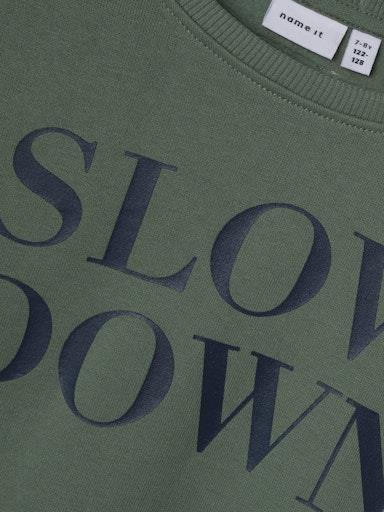 Otroški fantovski pulover s potiskom spredaj, z mehkim rebrastim patentom na zaključkih, z dekorativnim našitkom zadaj, kosmaten material, rahlo širši in krajši kroj, dolg rokav. Material: 60% bombaž, 40% recikliran poliester