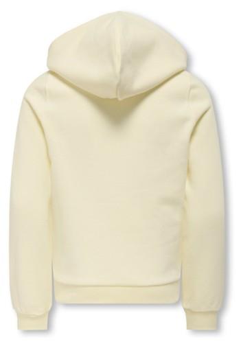 Otroški pulover s kapuco za dekleta blagovne znamke KIDS ONLY, z mehkim rebrastim patentom na zaključkih, z dekorativnim našitkom spredaj, s "kenguru" žepom spredaj, kosmaten material, regular kroj, dolg rokav. Material: 60% bombaž, 40% poliester