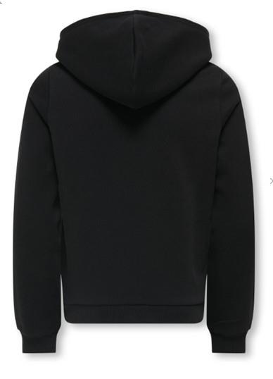 Otroški pulover s kapuco za dekleta blagovne znamke KIDS ONLY, z mehkim rebrastim patentom na zaključkih, z dekorativnim našitkom spredaj, s "kenguru" žepom spredaj, kosmaten material, regular kroj, dolg rokav. Material: 60% bombaž, 40% poliester