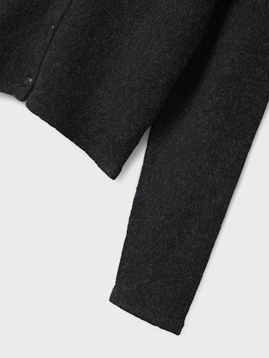 Otroška dekliška modna jopa iz fine in izjemno mehke pletenine, z rebrastimi zaključki, z dekorativnimi gumbi spredaj, rahlo krajši kroj, dolg rokav. Material: 50% recikliran poliester, 29% poliester, 17% poliamid, 4% elastan