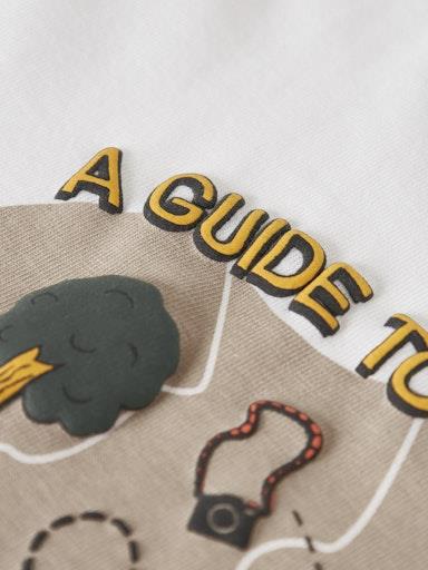 Otroška fantovska majica s potiskom spredaj, širši in krajši kroj, dolg rokav. Material: 100% ekološki bombaž