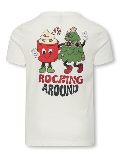 Otroška dekliška majica blagovne znamke KIDS ONLY, s prikupnim potiskom z božičnim motivom spredaj in zadaj, z bleščičastimi detajli, regular kroj, kratek rokav. Material: 100% ekološki bombaž