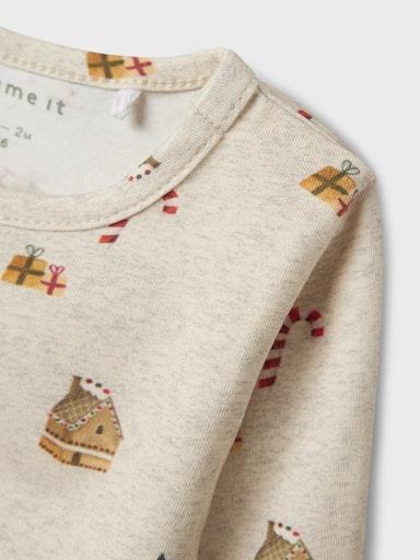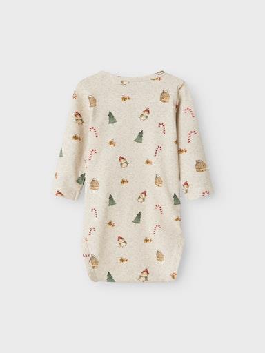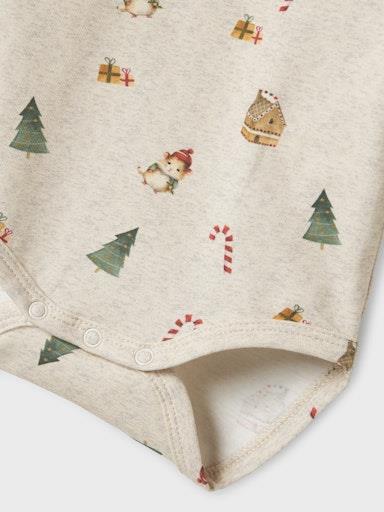Otroški unisex body z božičnim motivom, iz prijetenega in udobnega ekološkega bombaža, zapenjanje s skritimi pritiskači na ramenih, regular kroj, dolg rokav. Material: 95% ekološki bombaž, 5% elastan