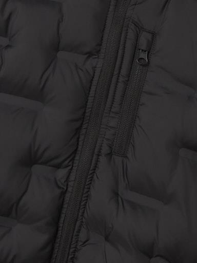 Otroška fantovska zimska jakna, prešitega videza, z visokim ovratnikom in odstranljivo kapuco, toplo podložena, z dvema žepoma na strani in enim v višini prsi, z mehko elastiko na zaključkih, zapenjanje na zadrgo. Material: 100% poliester