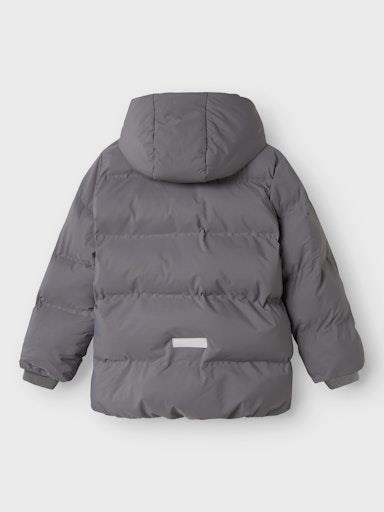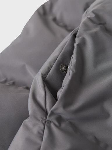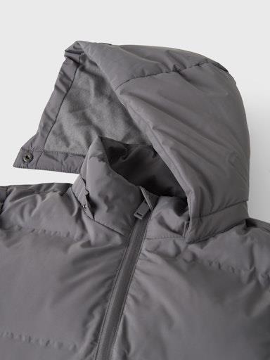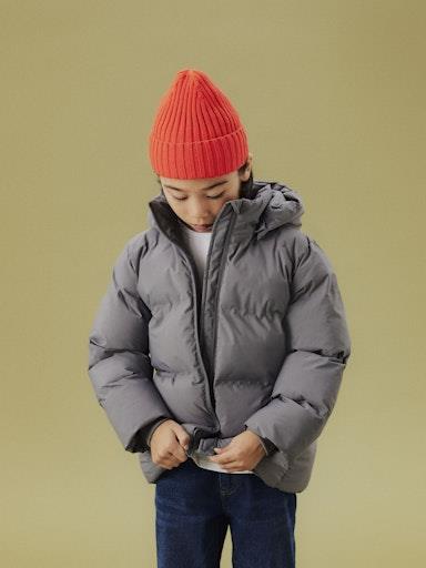 Otroška unisex zimska jakna prešitega videza, z visokim ovratnikom in odstranljivo kapuco, z mehko in toplo podlogo iz flisa, podložena je tudi kapuca, z dvema žepoma na straneh, z elastiko v pasu, z odsevnim elementom zadaj, zapenjanje z zadrgo spredaj, rahlo daljši kroj. Material: zunaj: 100% recikliran poliester; podloga: 100% poliester; polnilo: 100% recikliran poliester