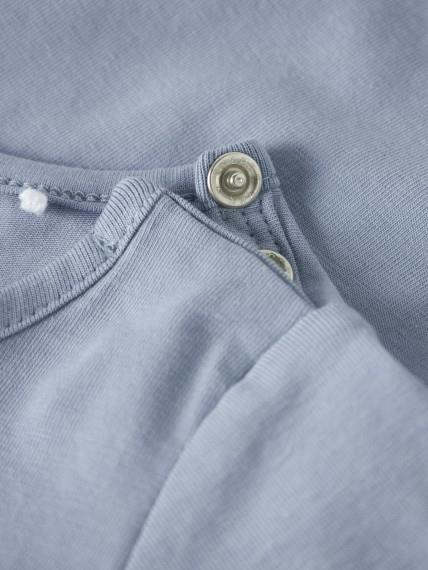 Otroški fantovski body z potiskom spredaj, zapenjanje na rami s skritimi pritiskači, dolg rokav. Material: 95% ekološki bombaž, 5% elastan