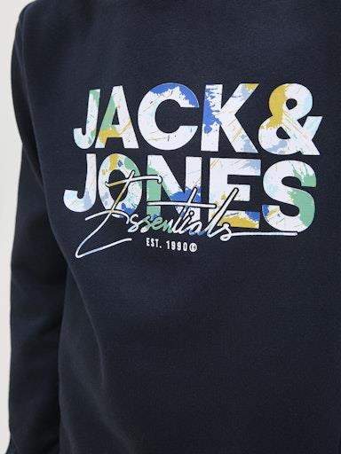 Otroški fantovski moden in udoben pulover s kapuco blagovne znamke JACK & JONES JUNIOR, nekosmaten material, z logotiopm spredaj, s patentom na zaključkih, dolg rokav. Material: 60% bombaž, 40% poliester