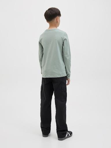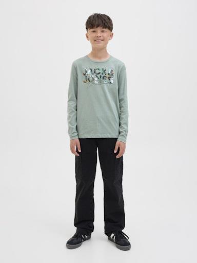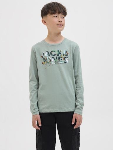 Otroška fantovska modna majica blagovne znamke JACK & JONES JUNIOR iz mehkega jersey-a, z mehkim potiskom spredaj, udoben in prijeten kroj za nošenje, dolg rokav. Material: 100% bombaž