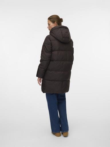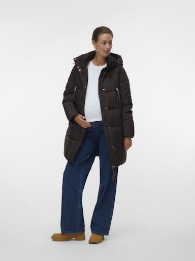 Nosečniška zimska dolga prešita jakna blagovne znamke VERO MODA MATERNITY, s kapuco in visokim ovratnikom, z mehko elastiko na rokavih, z dvema stranskima žepoma, zapenjanje na zdrgo. Prilagodljiv kroj za rastoč trebušček. Material: 50% poliester, 50% recikliran poliester