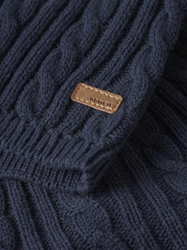 Otroška fantovska elegantna pletena jopa, iz mehkega ekološkega bombaža z vzorcem, z rebrastim patentom na zaključkih, z dekorativnim našitkom spredaj, zapenjanje z gumbi spredaj, regular kroj, dolg rokav. Material: 100% ekološki bombaž