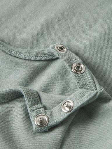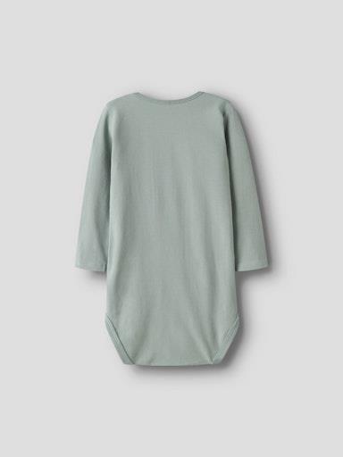 Otroški fantovski body z potiskom spredaj, zapenjanje na rami s skritimi pritiskači, dolg rokav. Material: 95% ekološki bombaž, 5% elastan