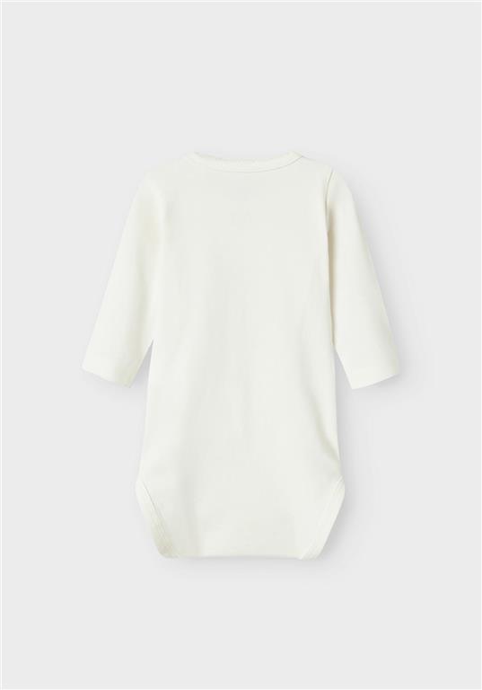 Otroški dekliški body z mehkim potiskom spredaj, rahlo nabrani rokavi na ramenih, zapenjanje na rami s skritimi pritiskači, dolg rokav. Material: 95% ekološki bombaž, 5% elastan