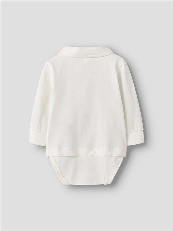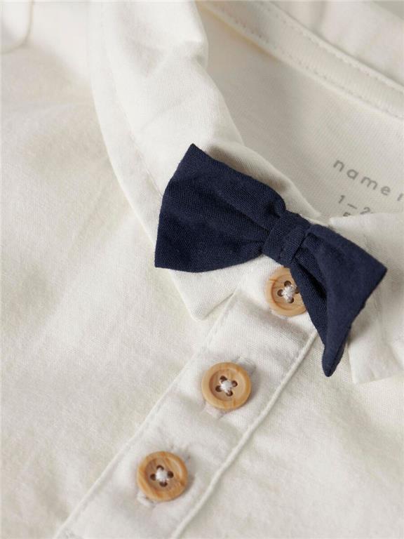 Otroška fantovska elegantna srajca z integriranim body-jem, z metuljčkom, zapenjanje na gumbe spredaj, visok klasični ovratnik, dolg rokav. Material: zgornji del: 100% ekološki bombaž