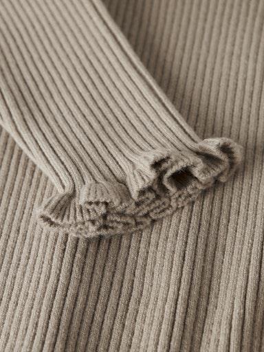 Otroški dekliški pulover iz fine in mehke pletenine, rebrasta struktura, z valovitimi zaključki na rokavih, z rahlo spuščenimi rameni, slim kroj, dolg rokav. Material: 51% LENZING™ ECOVERO™ viskoza, 29% poliester, 20% najlon