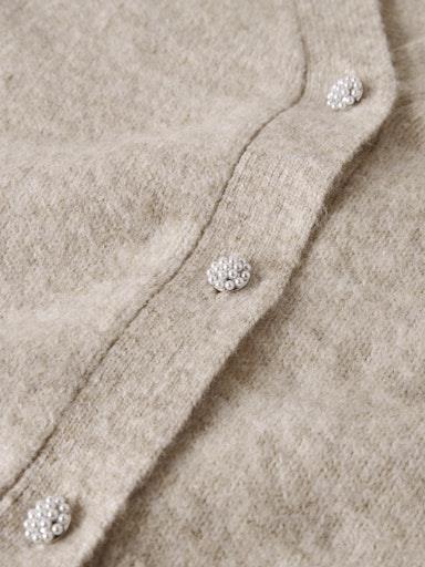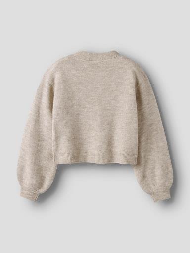 Otroška dekliška modna jopa iz fine in mehke pletenine, z V-Izrezom, z dekoratinimi gumbi, z rebrastim patentom na zaključkih, s širokimi rokavi na balon, krajši kroj, dolg rokav. Material: 52% poliester, 41% akril, 4% volna, 3% elastan