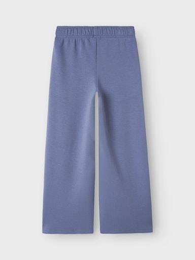 Otroška dekliška modna trenika s širokimi hlačnicami, z elastiko in vrvico v pasu, z dvema žepoma spredaj, nastavljiva širina pasu, regular kroj. Material: 83% recikliran poliester, 13% viskoza, 4% elastan