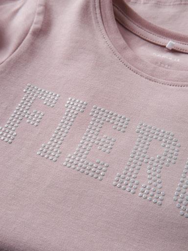 Otroška dekliška majica iz prijetenega ekološkega bombaža, z napisom spredaj, z bleščičastimi detajli, regular kroj, dolg rokav. Material: 100% ekološki bombaž