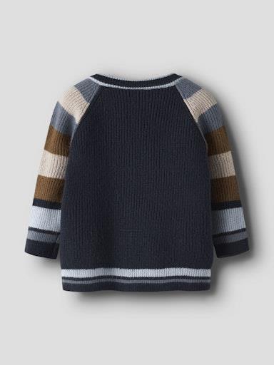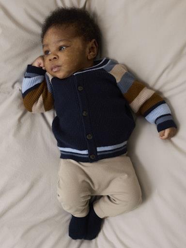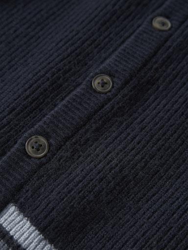 Otroška fantovska elegantna pletena jopa, iz mehkega in udobnega materiala, v modni večbarvni kombinaciji, z rebrastim patentom na zaključkih, zapenjanje z gumbi spredaj, regular kroj, dolg rokav. Material: 52% viskoza, 29% poliester, 19% najlon