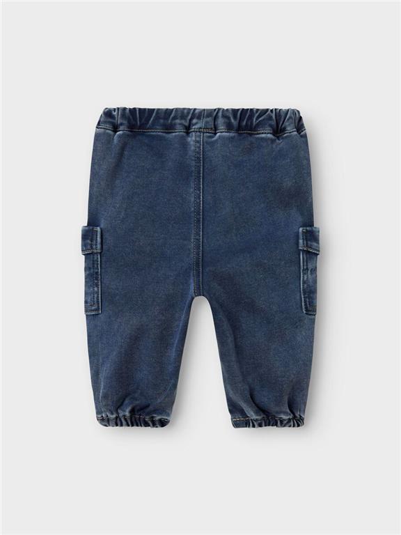Otroške fantovske mehke in udobne jeans hlače z elastiko, rahlo kosmatene, baggy kroj z dvema cargo žepoma na straneh, z mehko elastiko na hlačnicah, nastavljiva širina pasu. Material: 57% TENCEL™ liocel, 31% recikliran poliester, 10% viskoza, 2% elastan