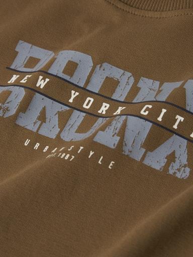 Otroška fantovska mehka in udobna majica z dekorativnim potiskom, z zavihki na rokavih, regular kroj, kratek rokav. Material: 95% bombaž, 5% elastan
