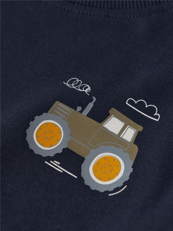 Otroški fantovski pulover iz prijetnega ekološkega bombaža, s potiskom spredaj, s "kenguru" žepom, z mehkim rebrastim patentom na zaključkih, kosmaten material, širši kroj, dolg rokav. Material: 95% ekološki bombaž, 5% elastan