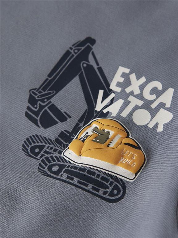 Otroški fantovski pulover iz prijetnega ekološkega bombaža, s potiskom spredaj, s "kenguru" žepom, z mehkim rebrastim patentom na zaključkih, kosmaten material, širši kroj, dolg rokav. Material: 95% ekološki bombaž, 5% elastan