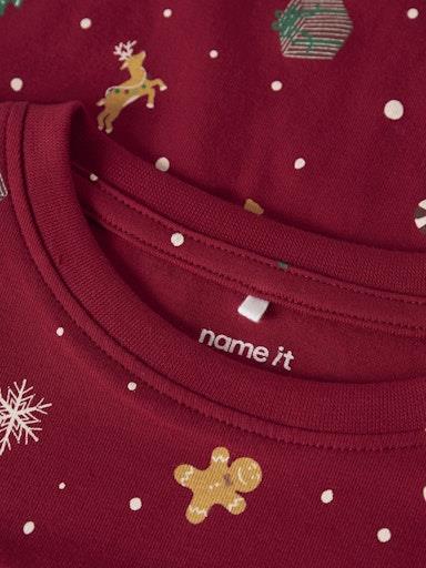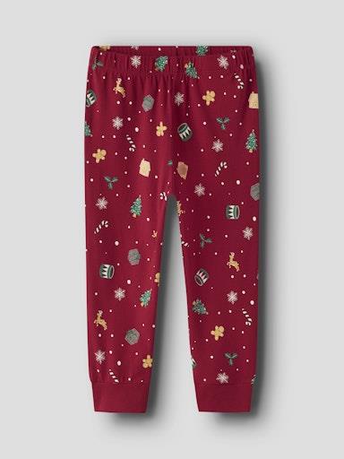 Otroška unisex pižama z božičnim all over motivom, majica z dolgimi rokavi ter spodnji del z elastiko v pasu in patentom na hlačnicah. Material: 95% bombaž, 5% elastan