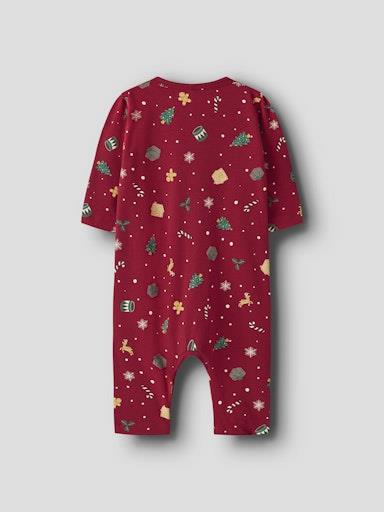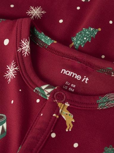 Otroška unisex enodelna pižama z božičnim all-over motivom, zapenjanje na nete, neti tudi v razkoraku za lažje previjanje, s patentom na rokavih, dolg rokav. Material: 95% bombaž, 5% elastan