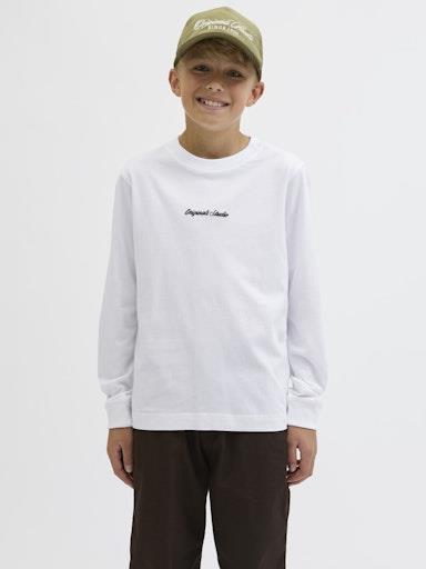 Otroška fantovska modna majica blagovne znamke JACK & JONES JUNIOR iz mehkega jersey-a, z mehkim potiskom spredaj, z mehkim patentom za zapestjih, udoben in prijeten kroj za nošenje, dolg rokav. Material: 90% bombaž, 10% recikliran bombaž