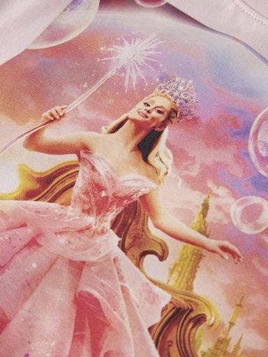 Otroška dekliška majica z licenčnim potiskom iz serije Wicked, s potiskom spredaj, z bleščičastimi detajli, rahlo širši in krajši kroj, kratek rokav. Material: 95% bombaž, 5% elastan