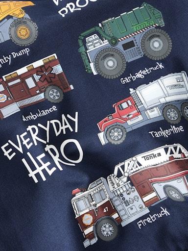 Otroški licenčni TONKA fantovski pulover brez kapuce iz prijetnega ekološkega bombaža, s potiskom spredaj, z mehkim rebrastim patentom na zaključkih, kosmaten material, rahlo širši in krajši kroj, dolg rokav. Material: 95% ekološki bombaž, 5% elastan