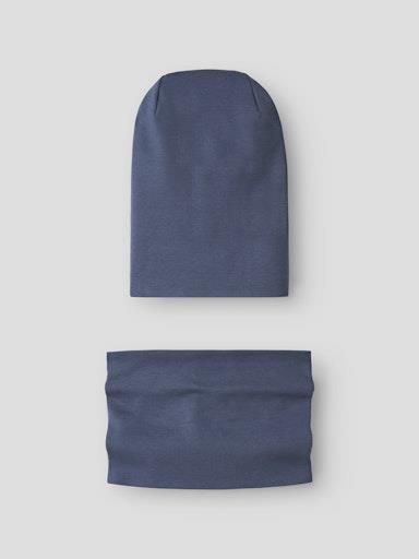 Otroški fantovski komplet kape in uporabne tube za okrog vratu (ki je uporabna namesto šala), nosljivo na obe strani. Material: 95% bombaž, 5% elastan. Velikosti: 47/48: 1-1,5 let, 48/49: 2–3 let, 51/52: 4–5 let,