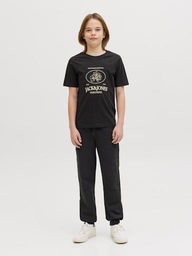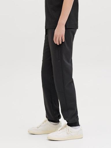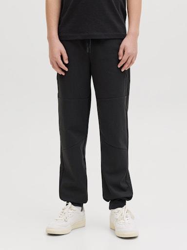 Otroška fantovska modna in udobna trenirka blagovne znamke JACK&JONES JUNIOR, z elastiko in vrvico v pasu, z dvema žepoma spredaj, z dekorativnimi šivi na hlačnicah, z mehkim patentom na zaključkih, nastavljiva širina z vrvico, regular kroj. Material: 75% recikliran poliester, 21% bombaž, 4% elastan