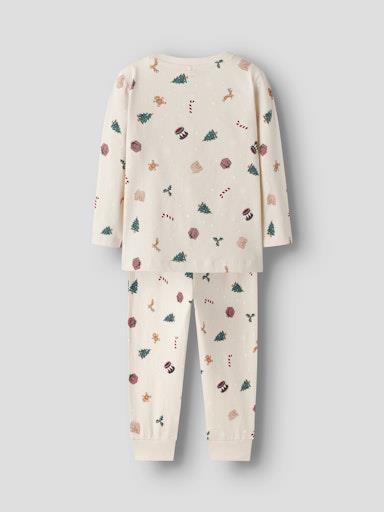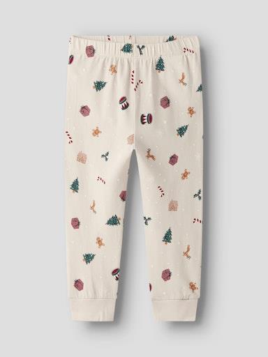 Otroška unisex pižama z božičnim all over motivom, majica z dolgimi rokavi ter spodnji del z elastiko v pasu in patentom na hlačnicah. Material: 95% bombaž, 5% elastan